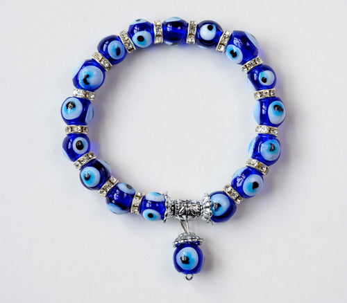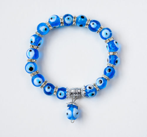 Artisanal: Turkey: Handmade Glass Beads Evil Eye Bracelet Blue