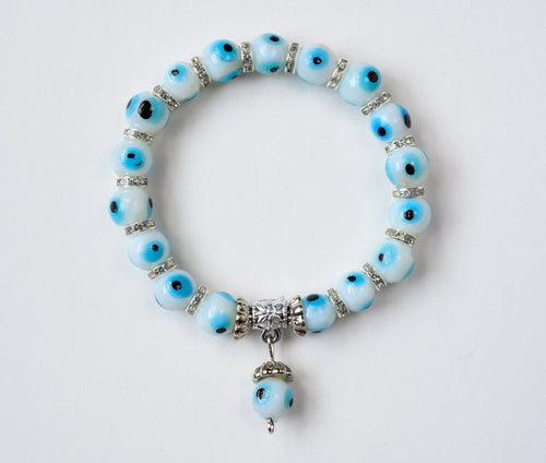 Artisanal: Turkey: Handmade Glass Beads Evil Eye Bracelet White